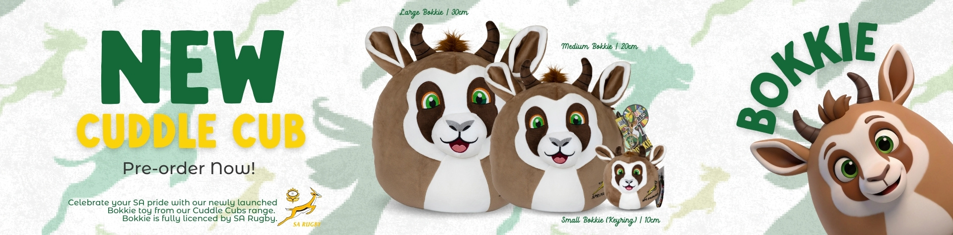 Little hands & big pride! Bokkie is here to bring the spirit of South African rugby into every hug, every playtime adventure, and every moment of fun. Officially licensed and proudly South African, Bokkie is the perfect companion for little Bok fans everywhere.